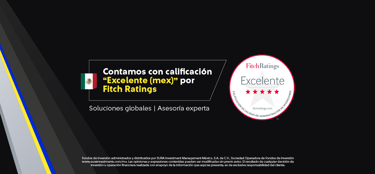 Al cierre de octubre de 2025, SURA Investments, a través de SURA Investment Management México, administra más de MXN 200 mil millones en activos, distribuidos entre fondos de inversión y mandatos institucionales, con una oferta diversificada que abarca deuda, renta variable y soluciones de inversión diseñadas para distintos perfiles de riesgo, tanto para clientes institucionales como para el público inversionista. Fitch valoró positivamente la claridad de los objetivos de inversión, la alineación con los prospectos y contratos, así como la supervisión continua del desempeño y del riesgo, y la retroalimentación permanente de estos análisis dentro del proceso de toma de decisiones.