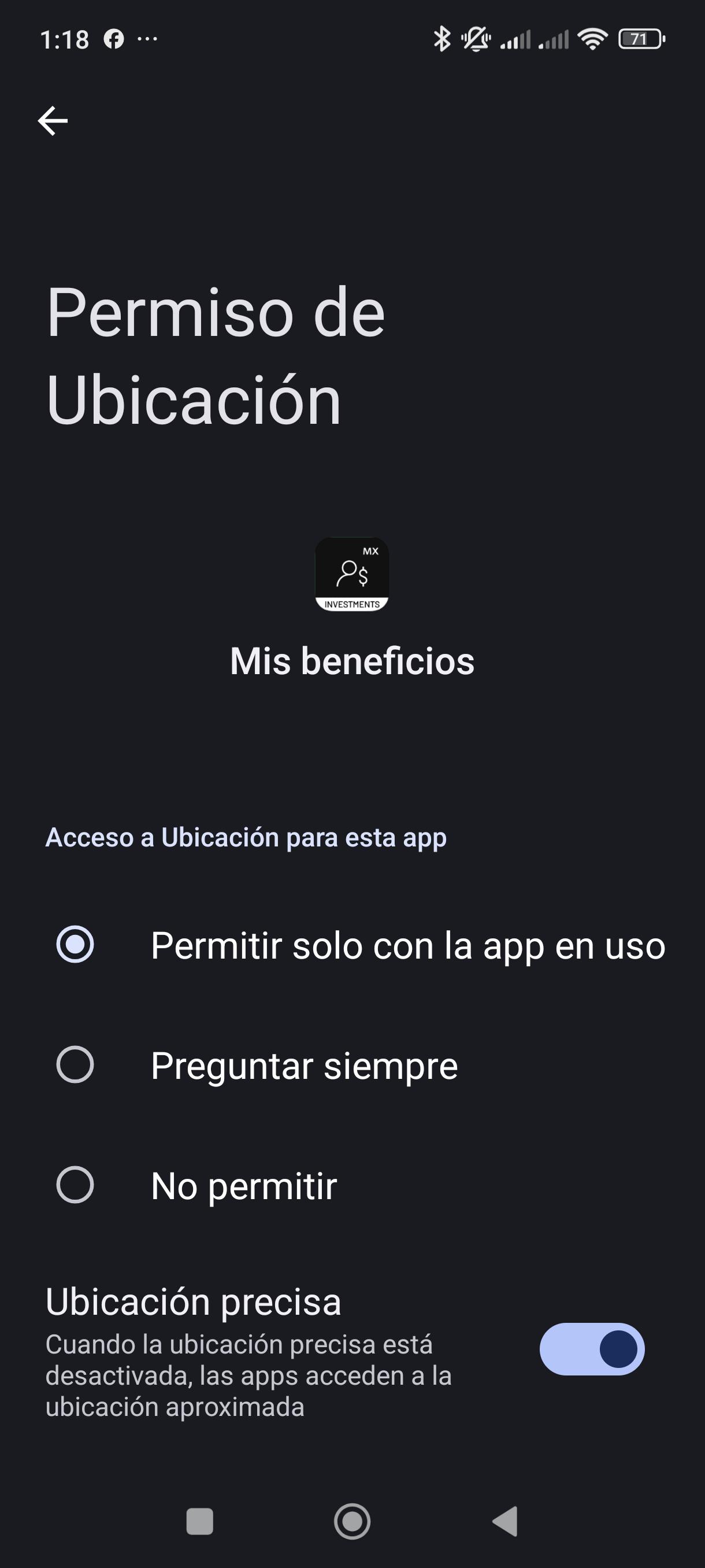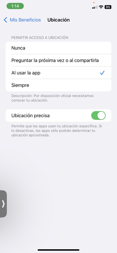 | 3 Deberás dar tab en la opción "Ubicación". ![]() | 4 Dar tab en la opción "Al usar la app", ya podrás continuar con tu creación de cuenta. ![]() |