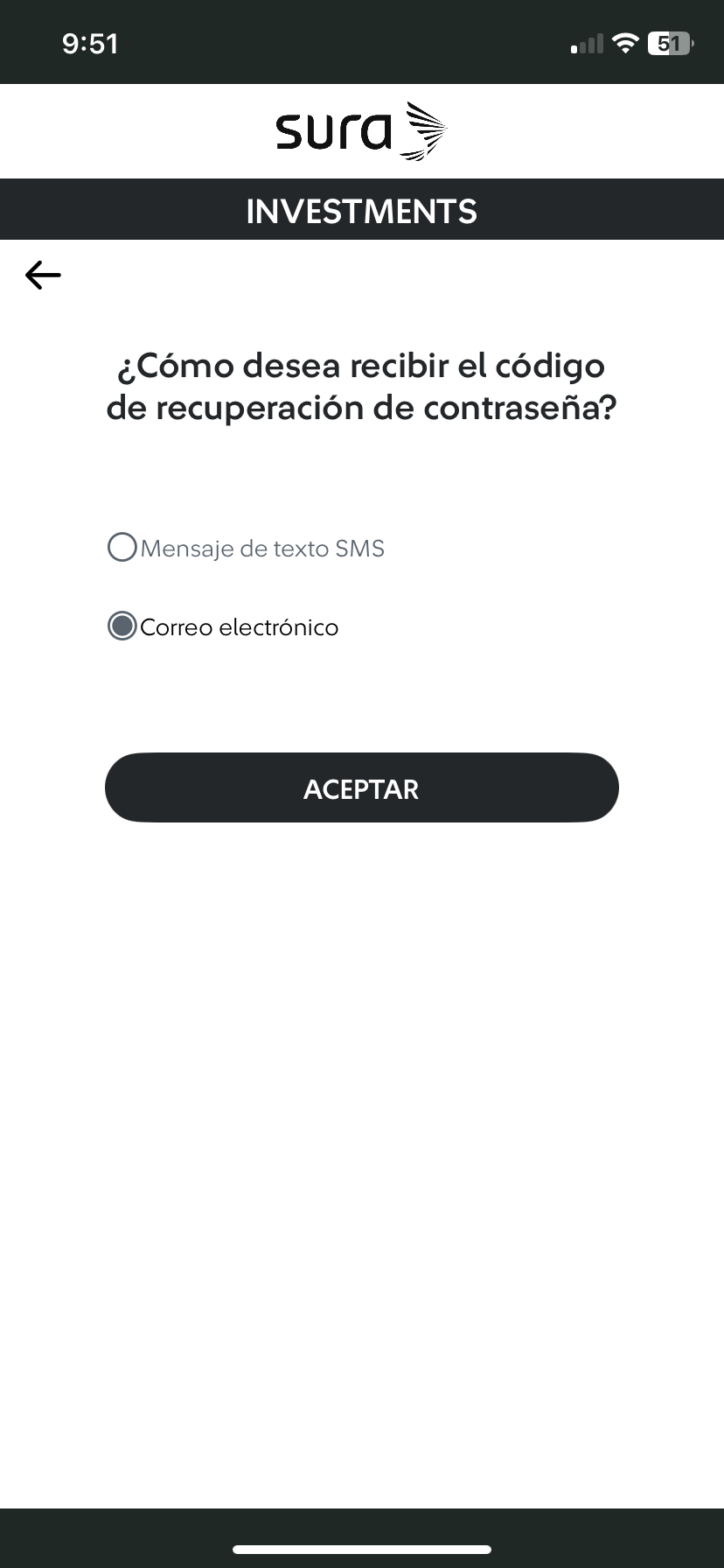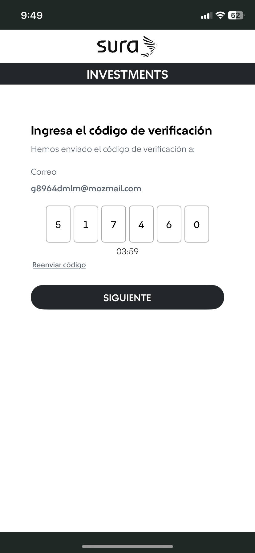 Por motivos de seguridad, recibirás un código de autenticación en tu correo o tu número de celular que hayas seleccionado, haz tab en el botón "Siguiente".