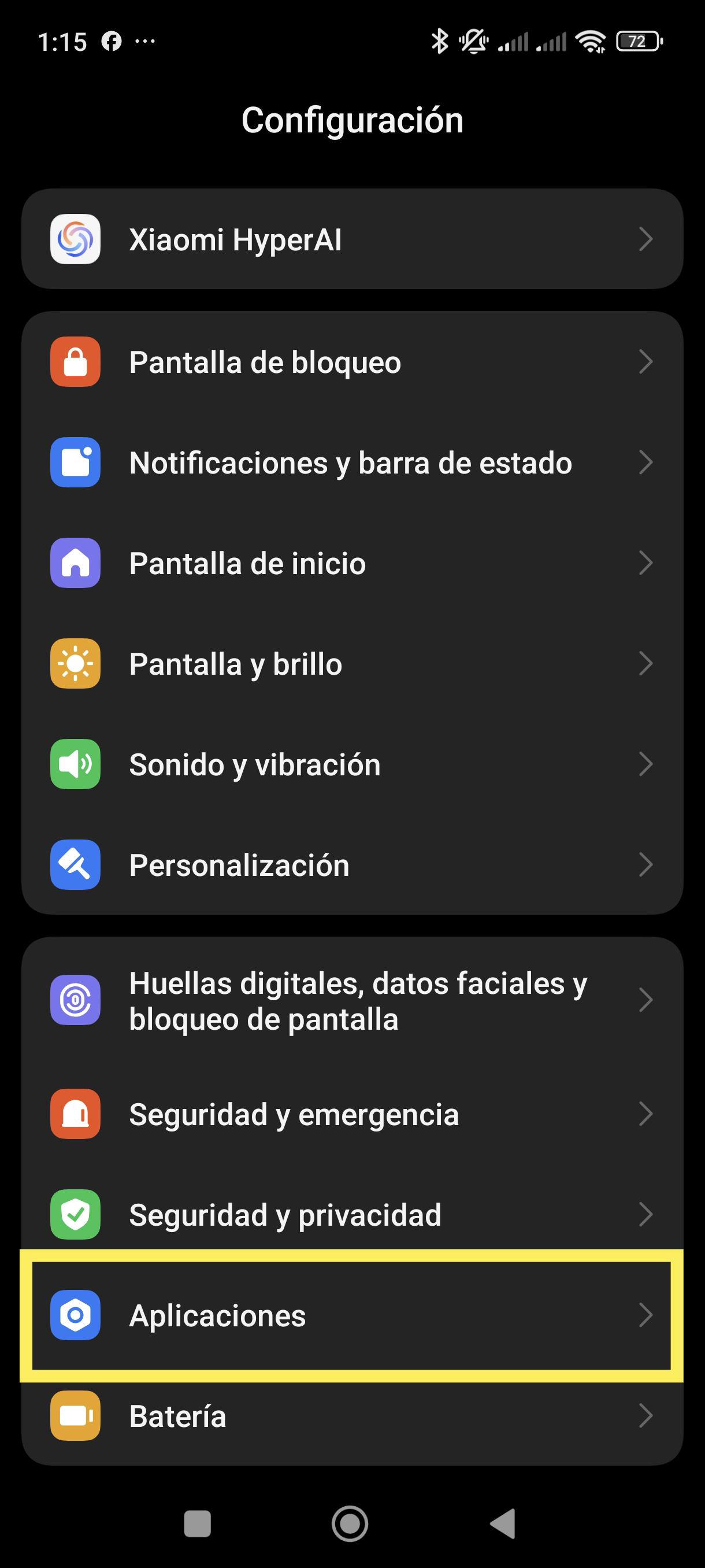 | 3 Ingresa a la "Configuración" de tu teléfono. ![]() | 4 Selecciona la opción "Aplicaciones". ![]() |