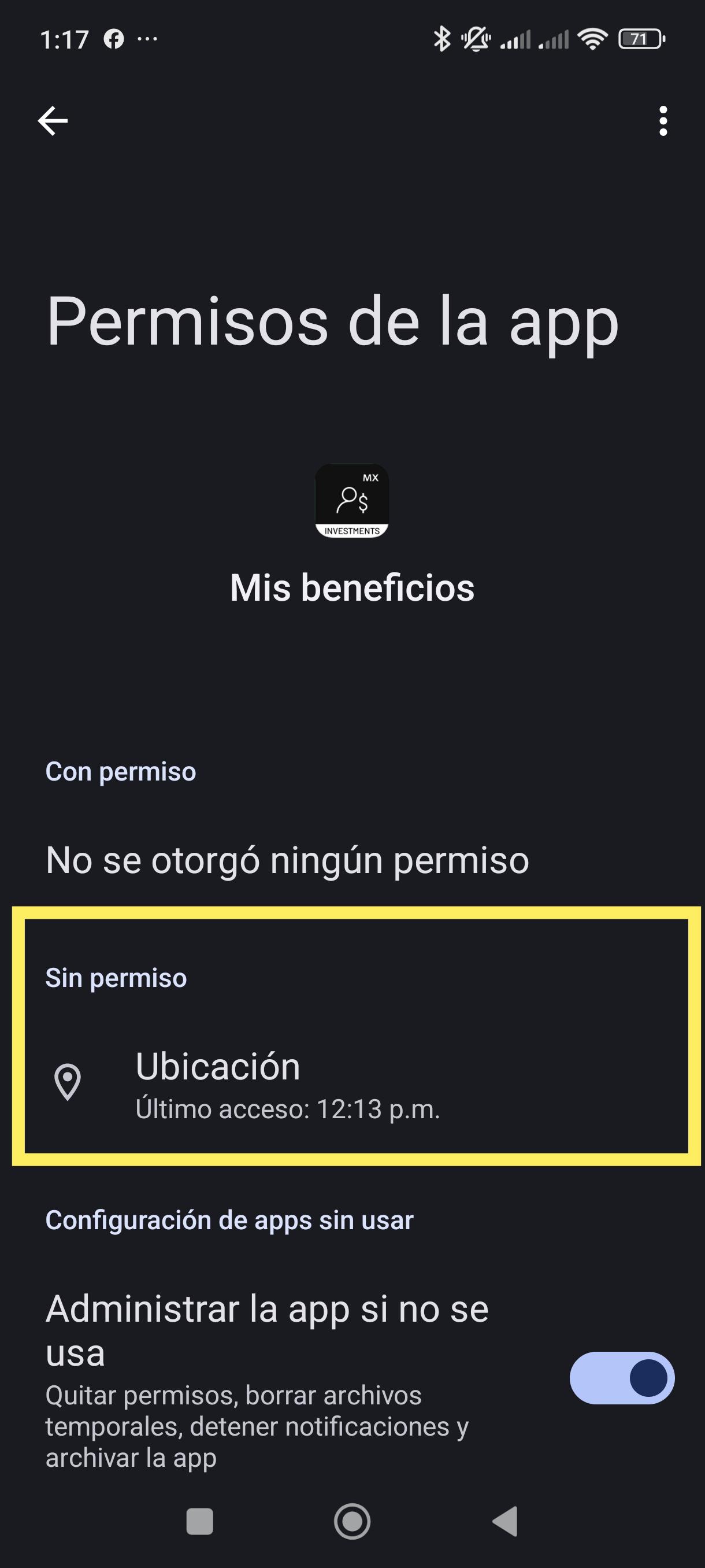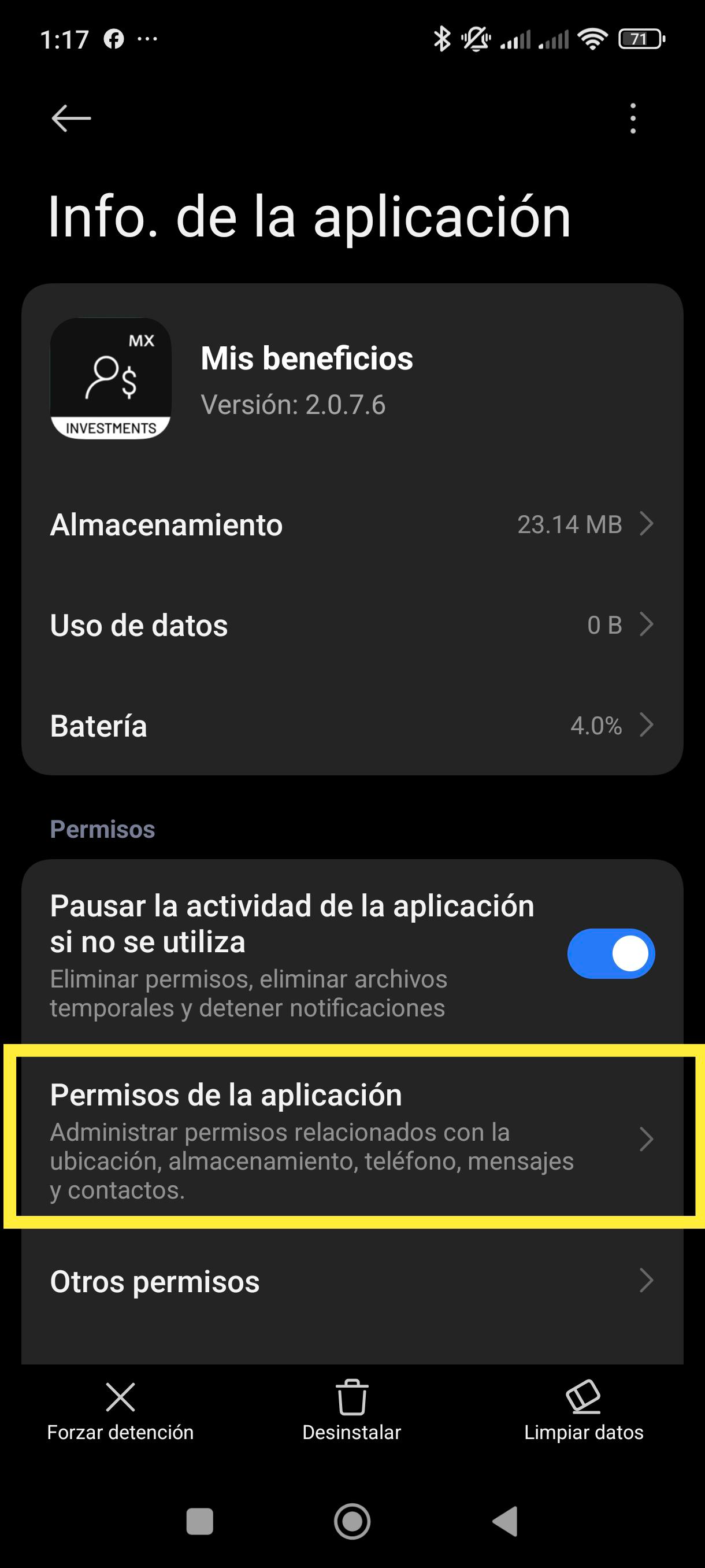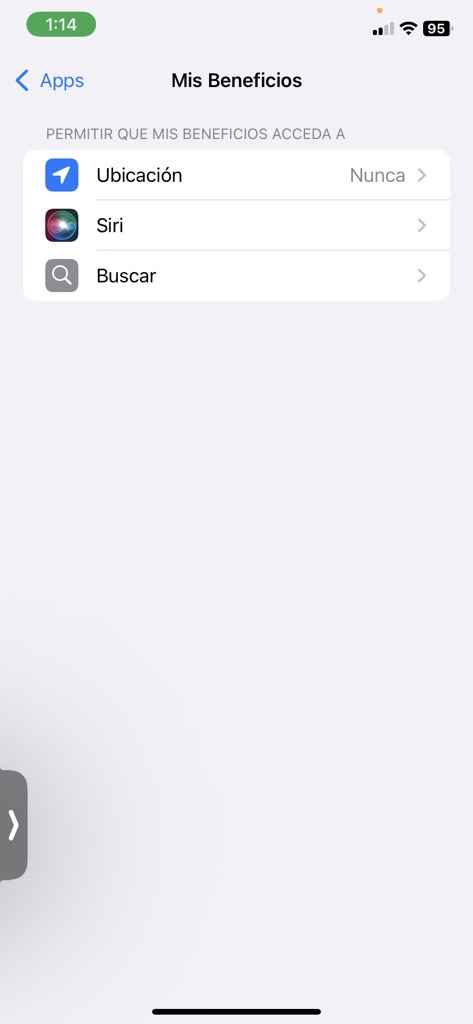 | 5 Busca y abre la app "Mis Beneficios". ![]() | 6 Selecciona "Permisos de la aplicación". ![]() |