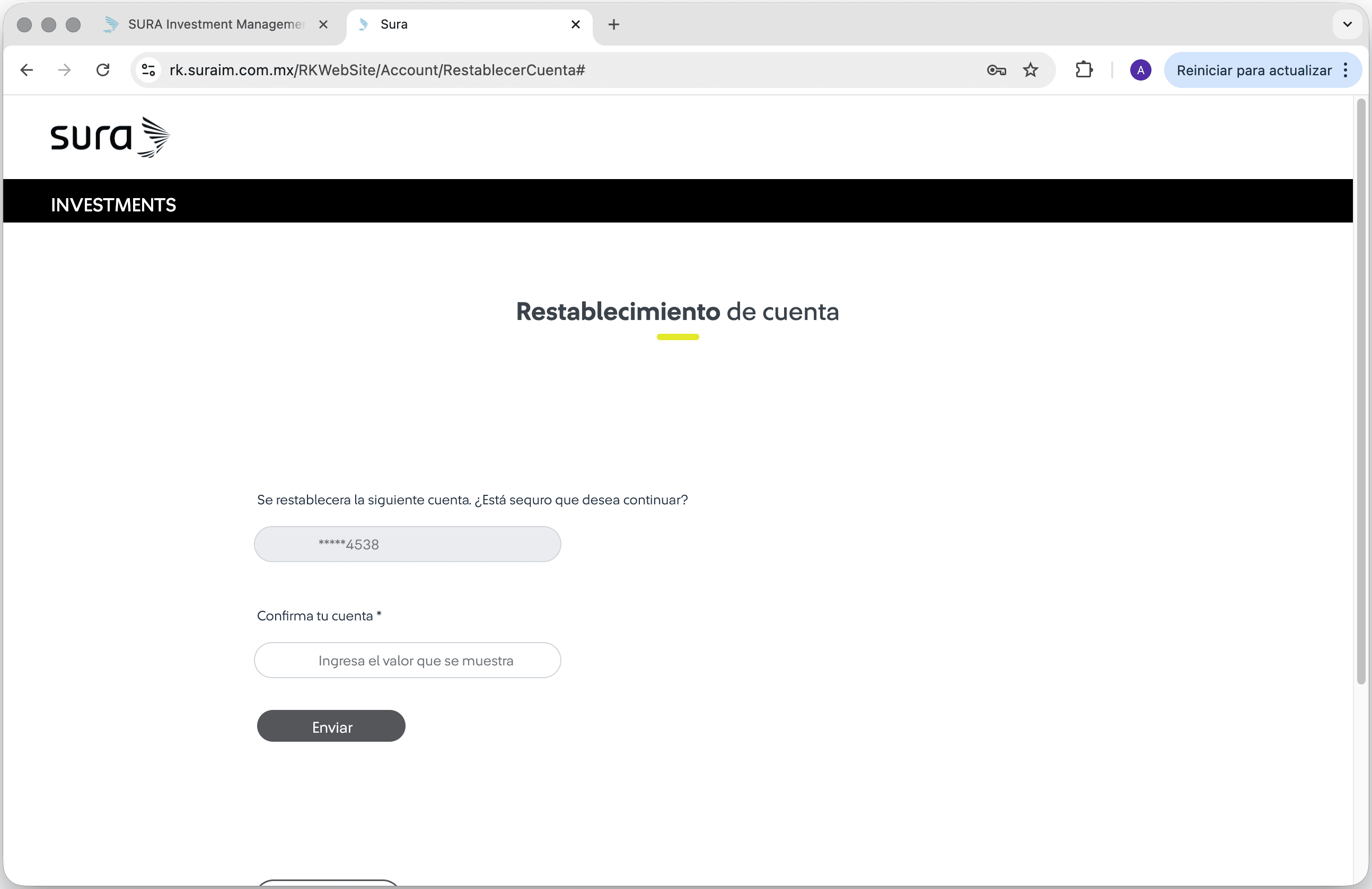 ¿Cuándo es viable reestablecer mi cuenta?