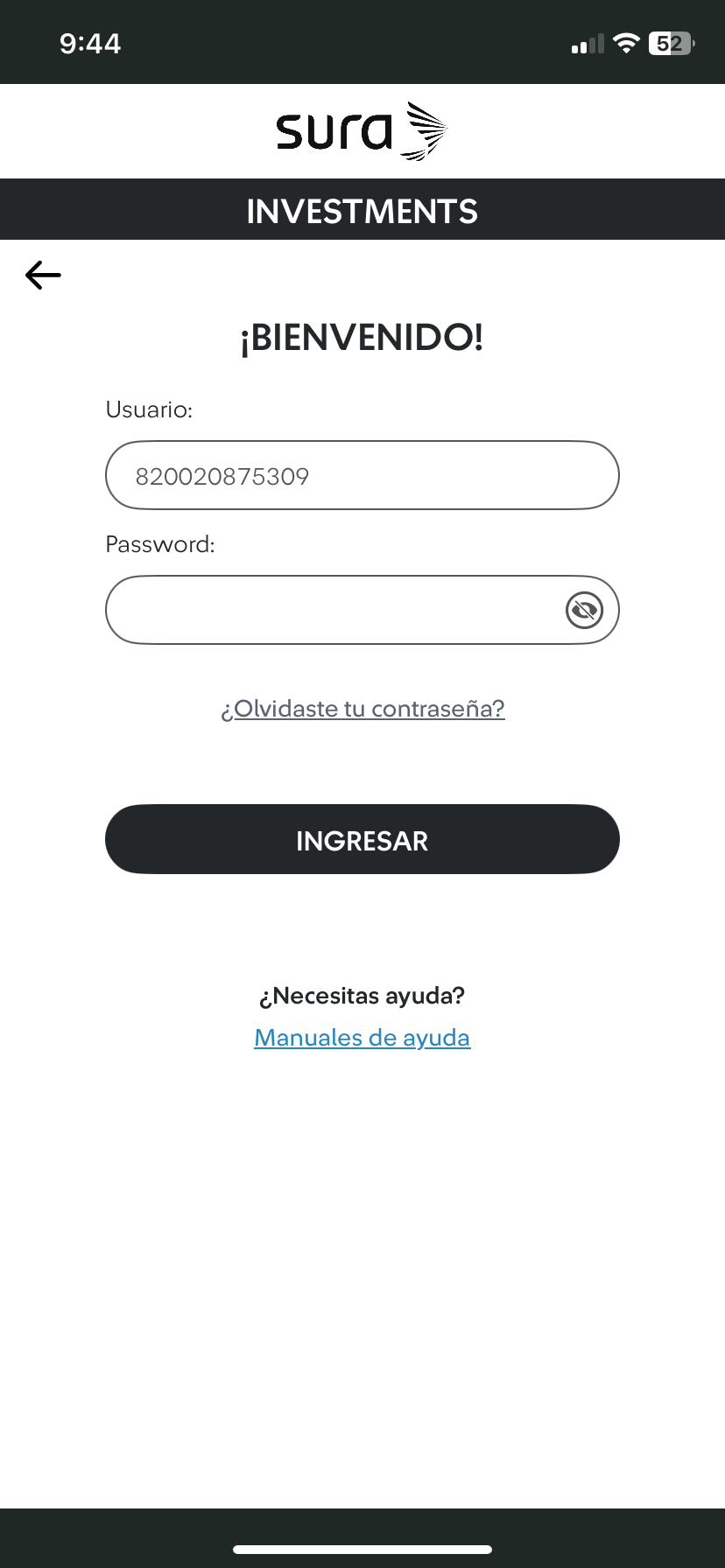 | 3 Ingresa tu usuario de 12 dígitos. Tip: Recuerda que tu Usuario de 12 dígitos será proporcionado por el equipo de Recursos Humanos de tu organización. | 4 Ingresa tu contraseña de 4 caracteres, luego haz tab en el botón "Ingresar". Tip: Recuerda que esta contraseña te será proporcionada por el equipo de Recursos Humanos de tu organización. Si tu usuario o contraseña no son correctos, es posible que ya hayas migrado tu cuenta a un correo electrónico. Te sugerimos intentar recuperar tu contraseña; de lo contrario, contacta a tu equipo de RH o restablece tu cuenta. (Escenario A): Dependiendo de la configuración de tu organización, es posible que te solicitemos actualizar tu contraseña. (Escenario B): Cambiar tu usuario de 12 dígitos por un correo electrónico o número de teléfono celular. |