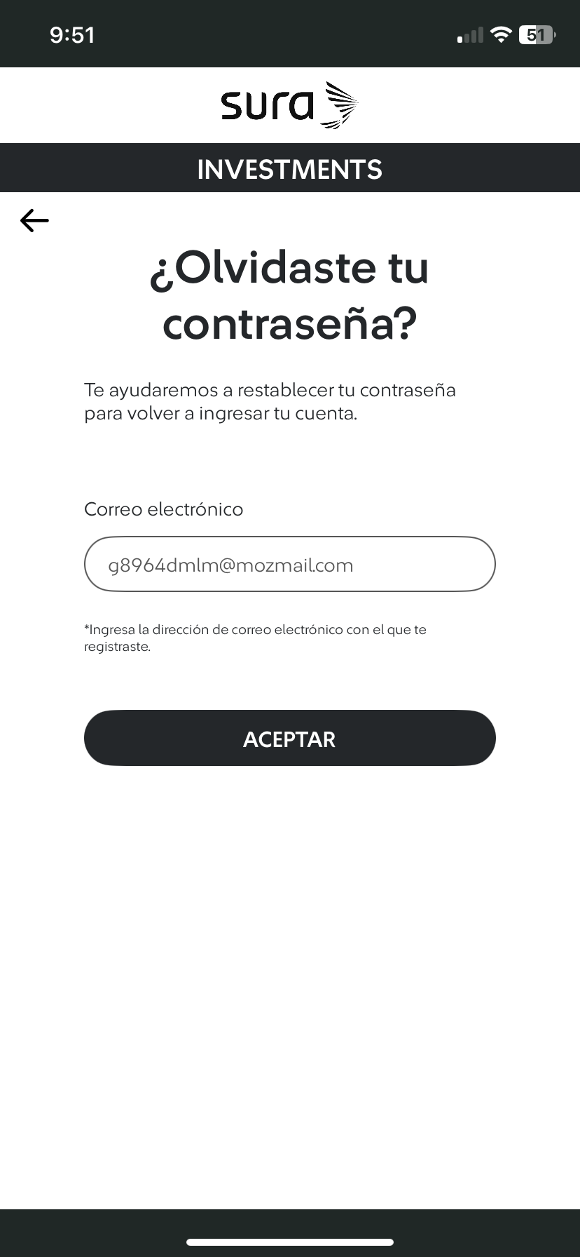 | 5 Ingresa los datos requeridos para validar tu identidad, luego haz tab en el botón "Aceptar". |
