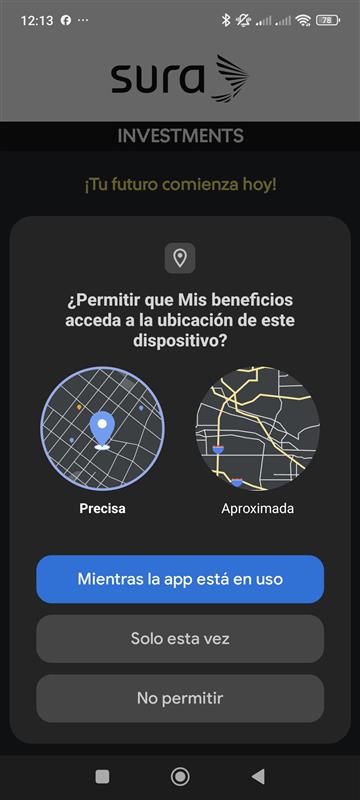 | 7 En la sección de ubicación, aparecerá la opción "Sin permiso" (Como se muestra en la imagen). ![]() | 8 Cambia el permiso a "Permitir solo con la app en uso", una vez realizado esto, podrás continuar con la creación de tu cuenta. ![]() |
