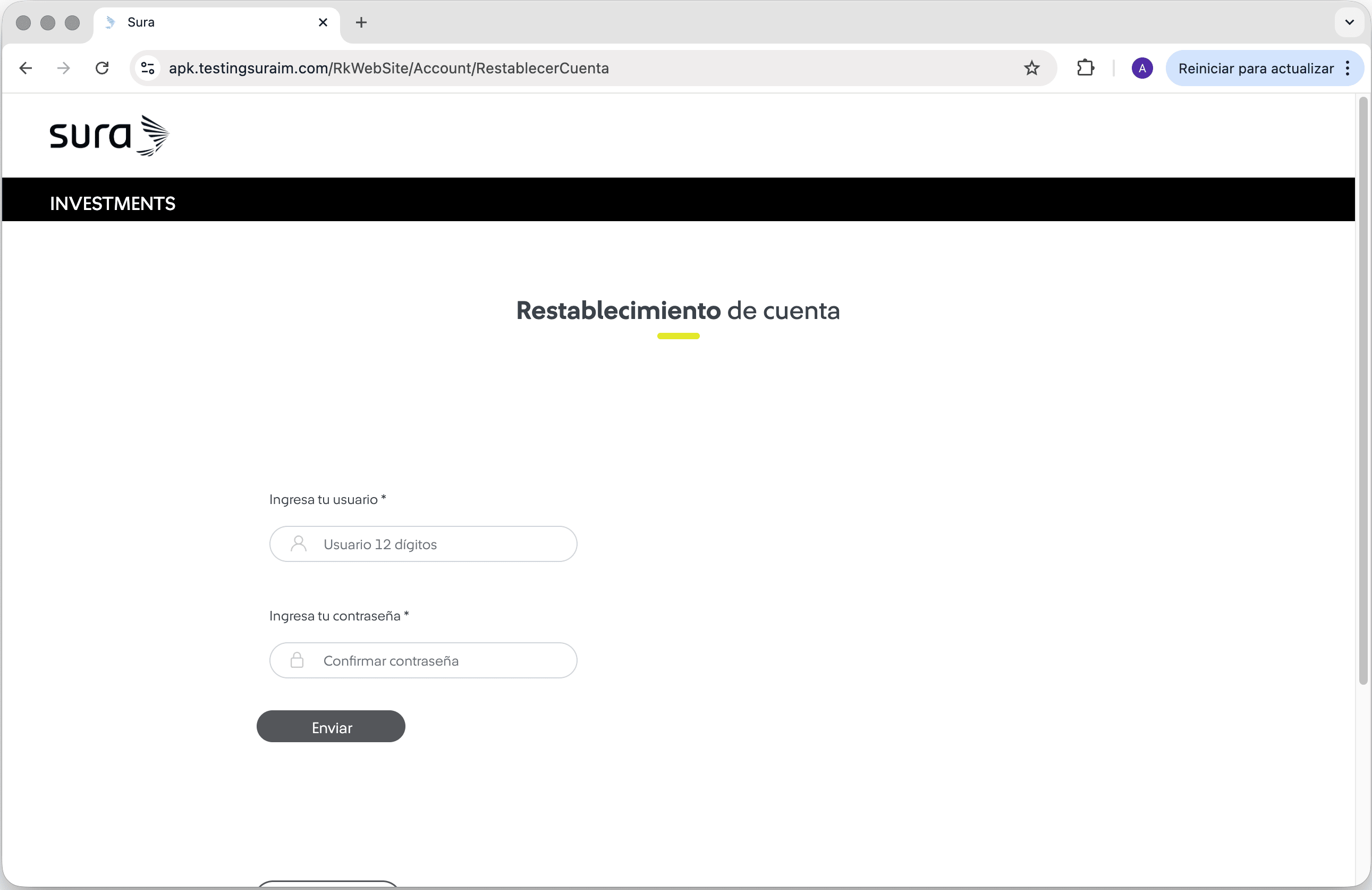 | Actualizar contraseña - Escenario A | |