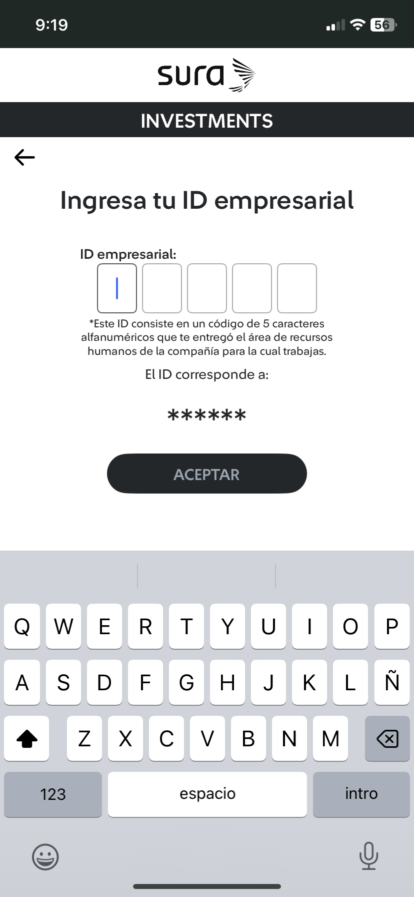 4 Ingresa el Id empresarial, luego haz tab en el botón "Aceptar". Tip: Recuerda que este ID empresarial te lo puede proporcionar el equipo de RH de tu organización y el algunos casos el equipo: Centro de Atención Institucional (CAI) 443-310-8197. Horario de atención de Lunes a viernes de 8:00 am a 5:00 pm. |